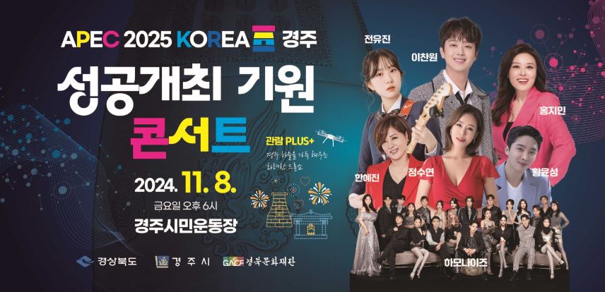 경주 APEC 성공개최를 기원하기위해 11월 8일 금요일 오후 6시 경주시민운동장에서 콘서트가 열립니다.