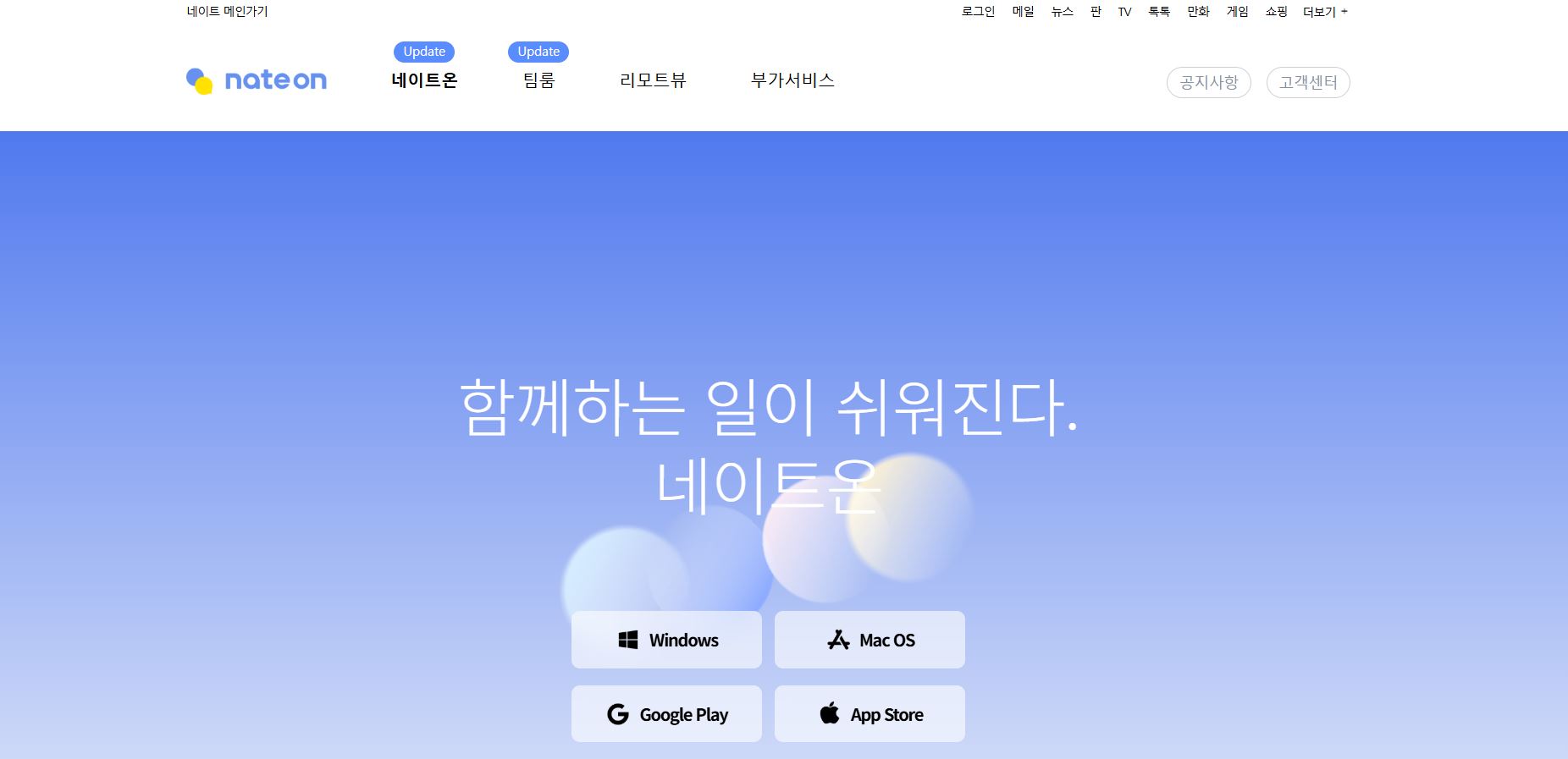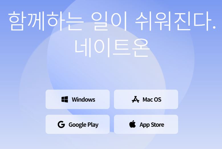 예전 메신저의 향수, 하지만 최신 기능까지 갖춘 메신저가 있다면 어떨까요? 지금 바로 스마트워크를 위한 최적의 메신저, '네이트온'을 경험해보세요. 다운로드 한 번으로 협업과 소통이 훨씬 쉬워집니다. 특히 AI 챗봇, 팀룸, 원격지원 등 다양한 기능들이 결합되어 있어 업무 효율까지 끌어올릴 수 있죠. 더 이상 고민하지 마세요. 아래 버튼만 누르면 지금 바로 다운로드 가능합니다.