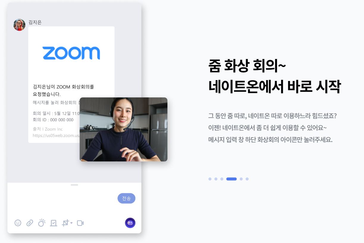 가능합니다. 줌(Zoom) 연동 기능을 통해 네이트온 대화창 하단에서 직접 화상회의를 시작할 수 있습니다.