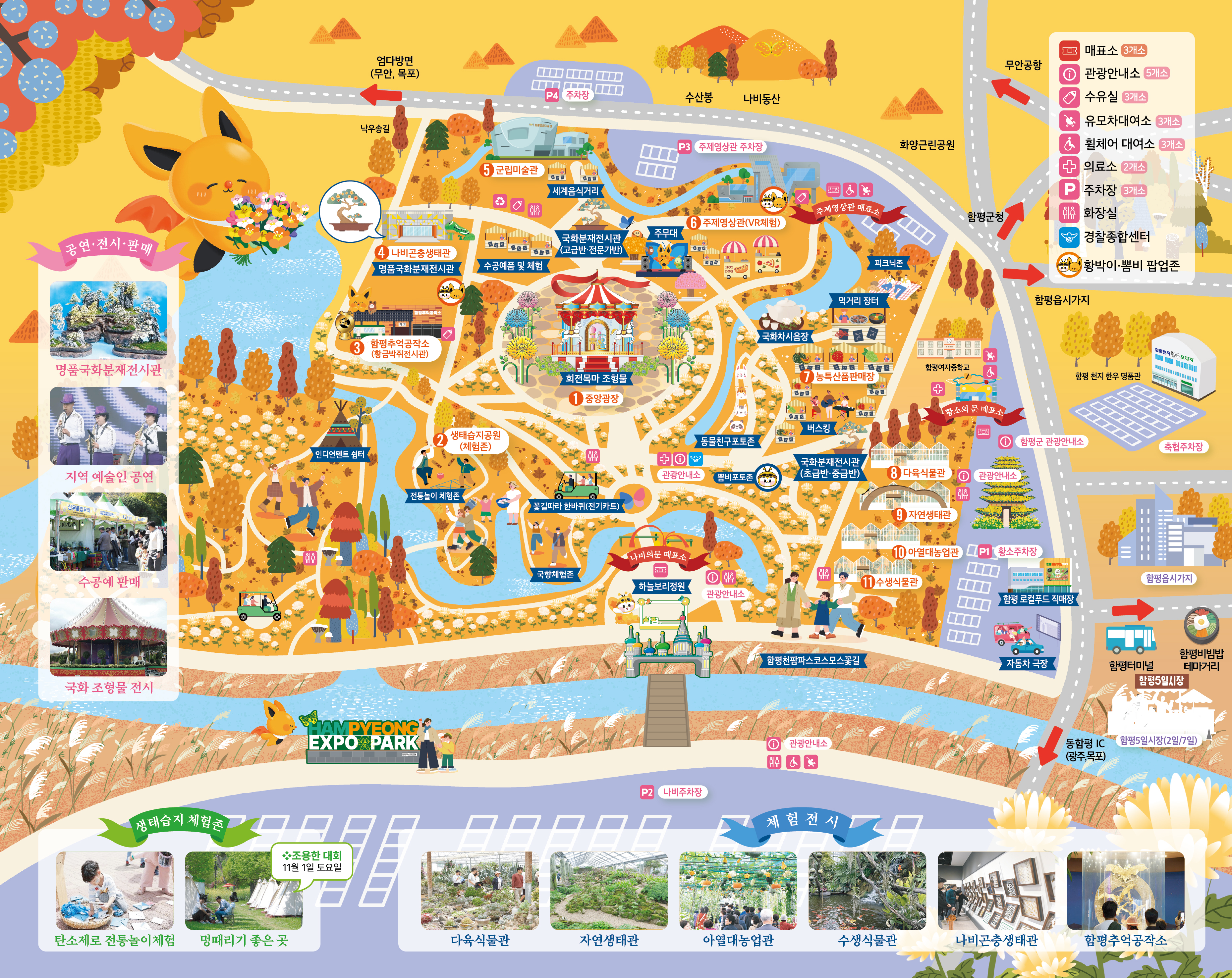| 전시 | 대형 국화 조형물, 국향랜드 테마존, 국화 분재 |