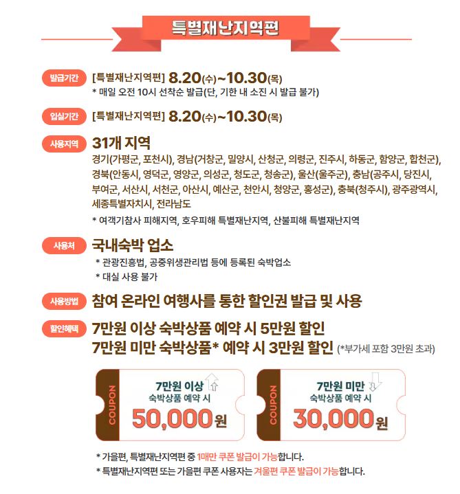 | 특별재난지역편 | 7만원 이상 / 미만 | 5만원 / 3만원 | 31개 특별재난 지역 |