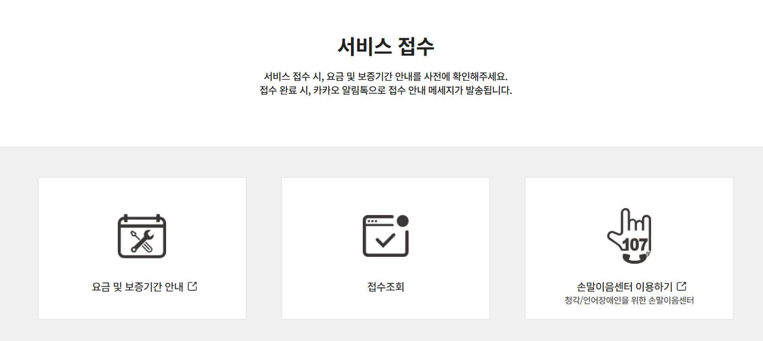 수리를 원하실 경우 아래 방법으로 간편하게 접수할 수 있습니다.
